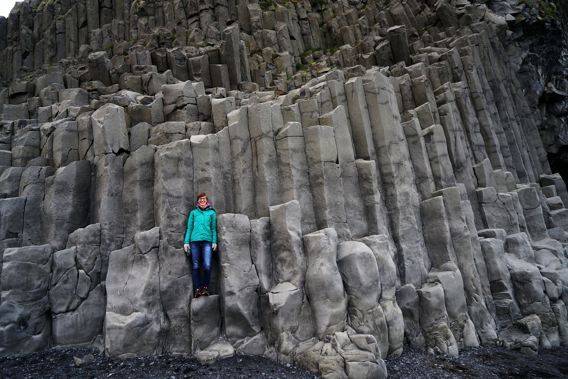 Nicht nur der schwarze Strand und die Felsen im Meer, auch die Hänge am Strand sind besonders. Die Basaltsäulen sehen aus wie eingemeißelt, sind aber ein Produkt der rauen isländischen Natur.