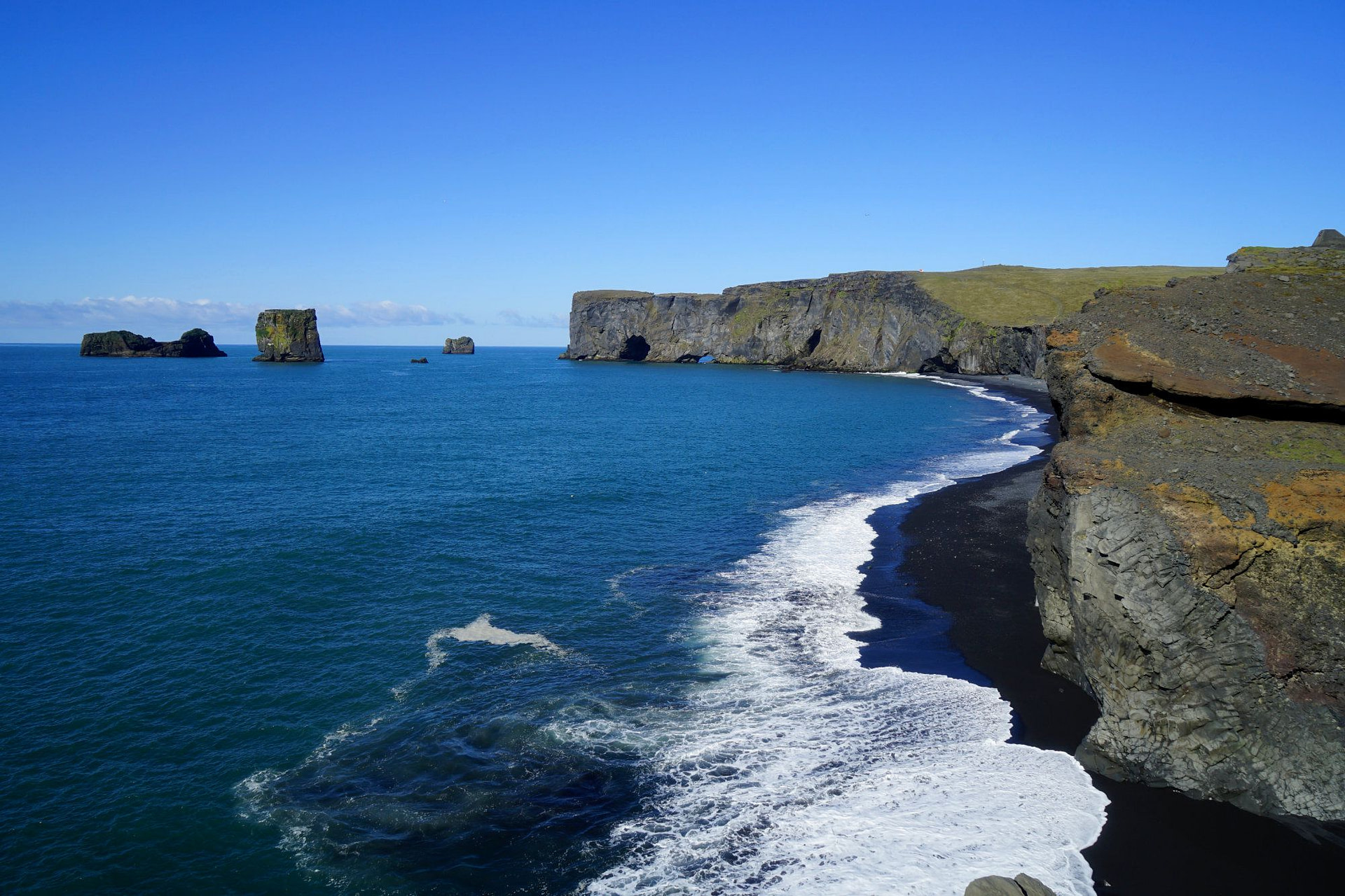 Nur wenige Meter vom Parkplatz entfernt, liegen mehrere Aussichtspunkte, von denen du die Steilklippen, den schwarzen Strand und das Meer beobachten kannst. Wenn du Glück hast, kannst du vielleicht sogar brütende Papageitaucher entdecken! Aber dazu mehr wenn wir dir vom Osten Islands erzählen.